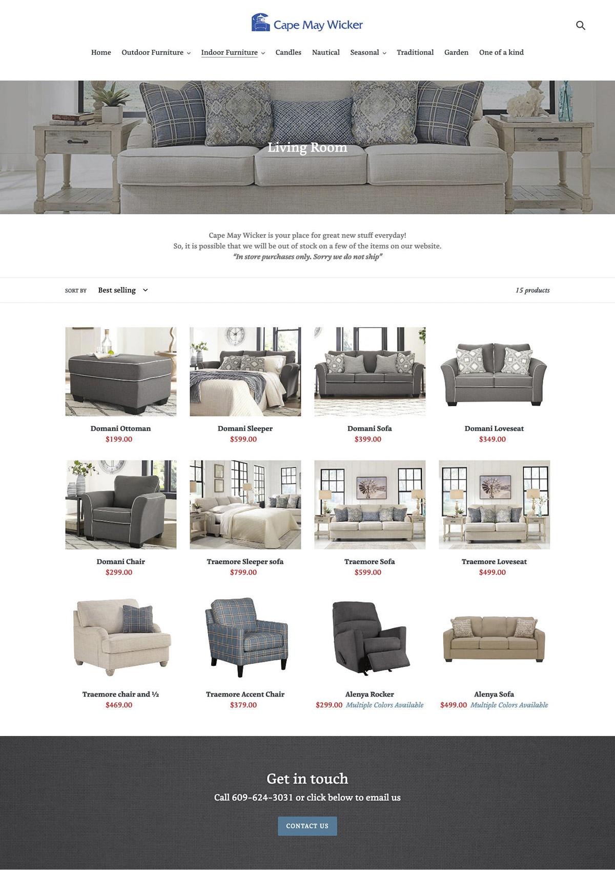 Cape May Wicker is a long-standing wicker furniture store located in Cape May, New Jersey. The goal of this project was to create a clean, approachable website that showcased their inventory online while preserving the in-store purchasing experience.