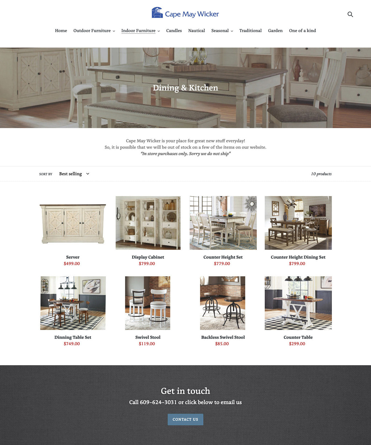 Shopify was used to create a structured e-commerce catalog that highlighted products clearly and attractively, with an emphasis on layout, organization, and visual presentation rather than checkout functionality. The design leaned into a coastal, timeless aesthetic that reflected both the Cape May location and the craftsmanship of the furniture, while making it easy for visitors to explore the collection.