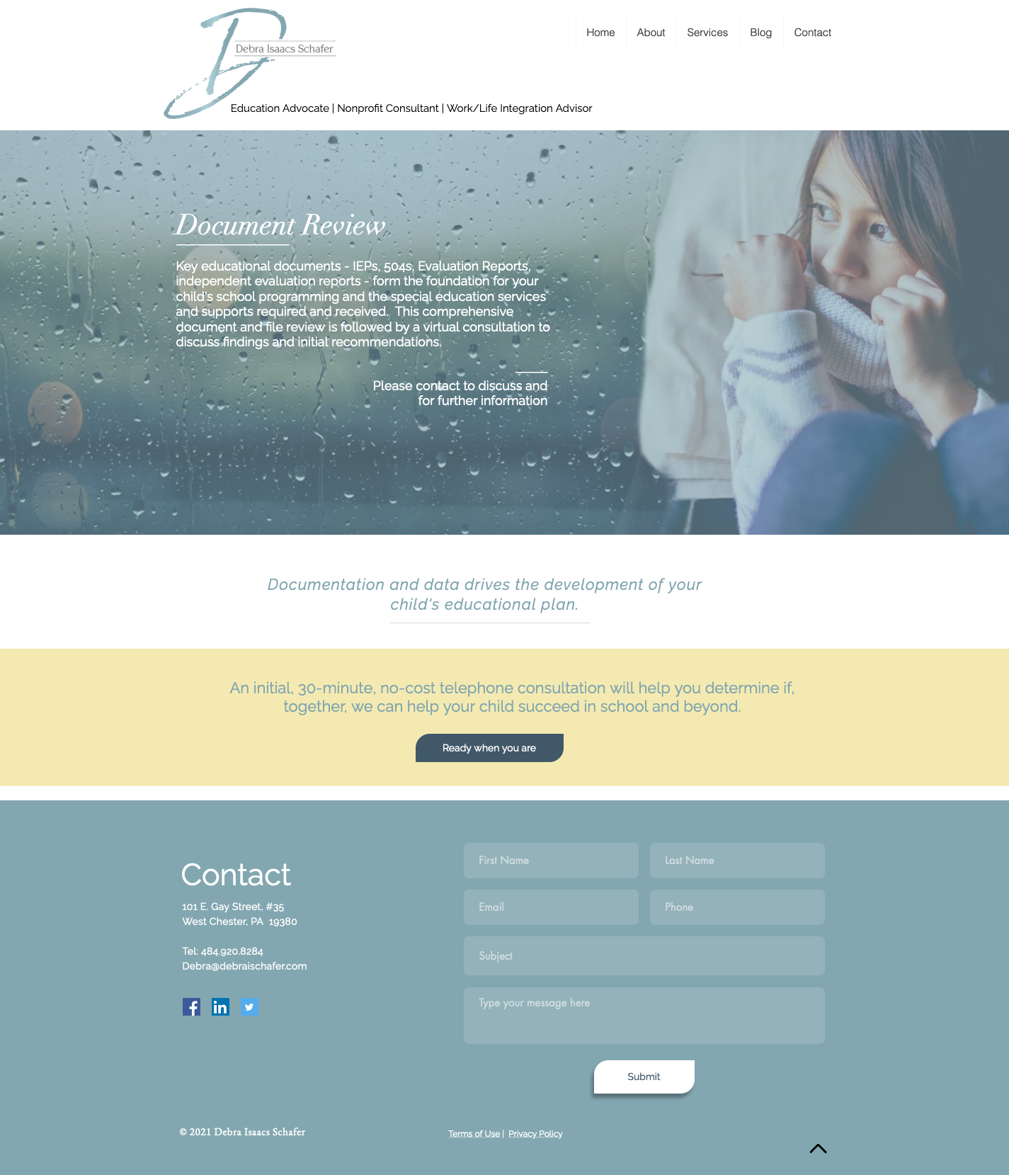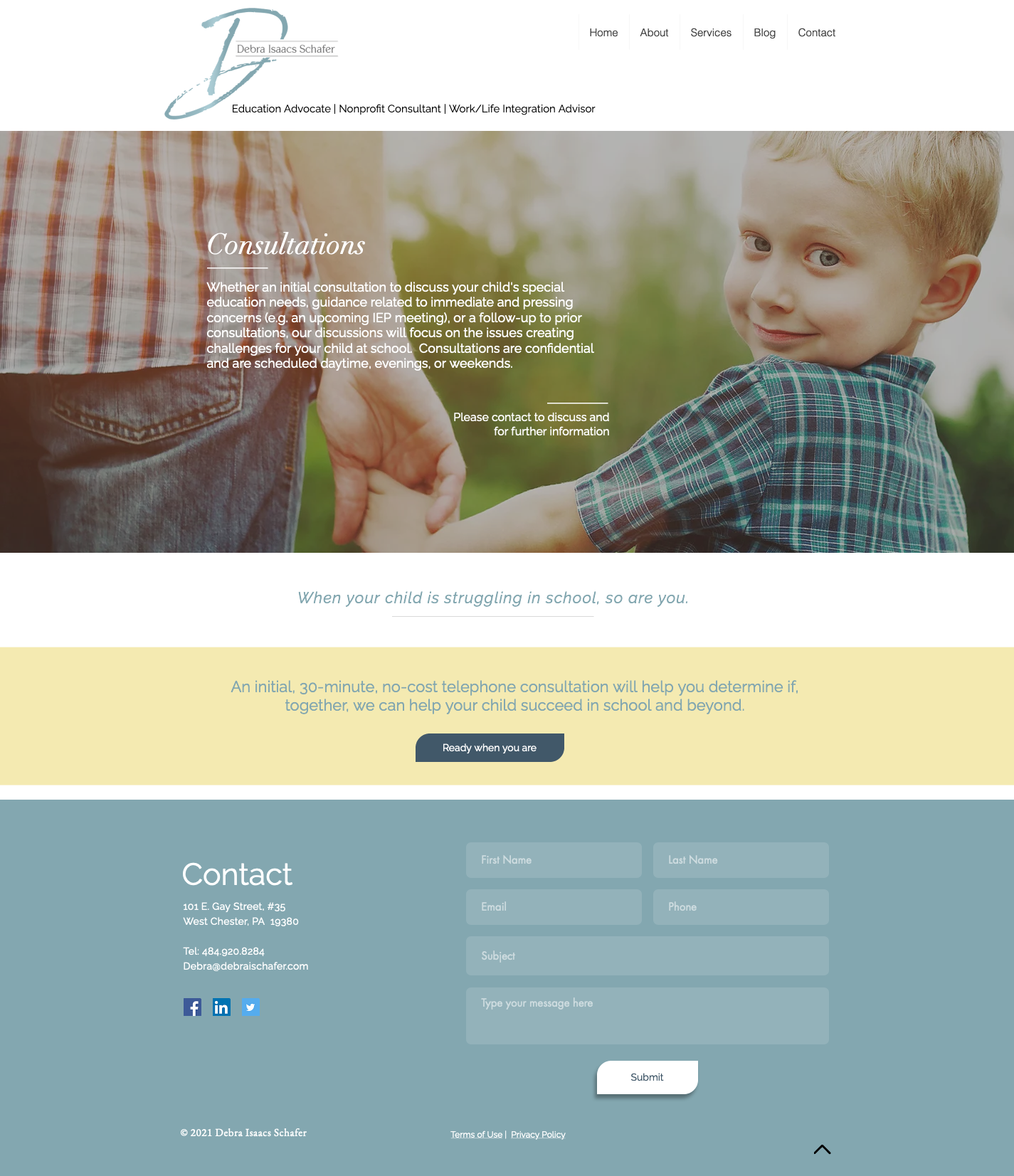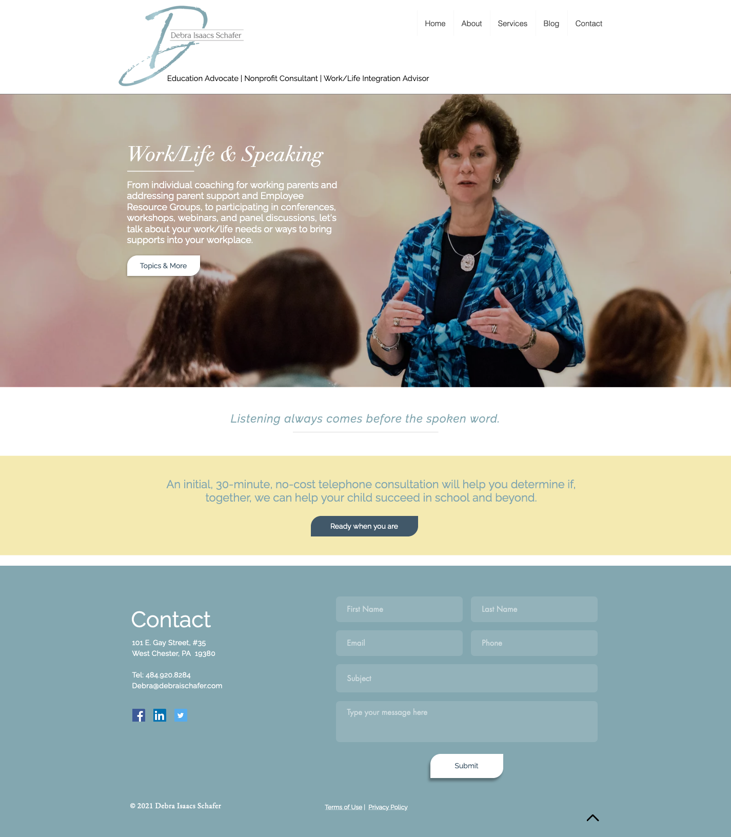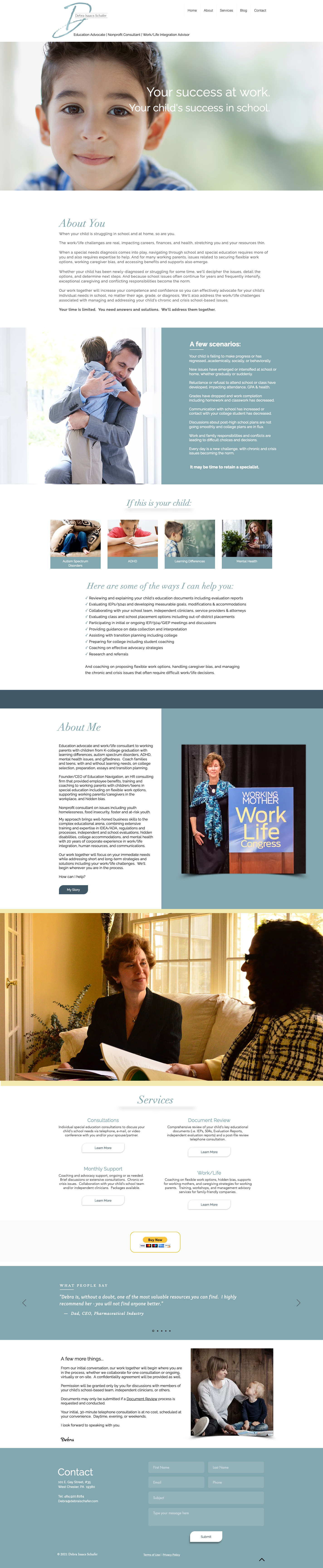 Debra Isaacs Schafer is an education advocate and consultant supporting families navigating complex educational, emotional, and work/life challenges. This project was a highly collaborative effort, rooted in deeply understanding Debra’s work, voice, and long-term goals.
