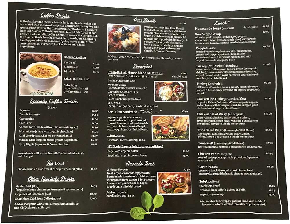 Flyers, handouts, PDFs, Menus, brochures, logos, business cards and more.